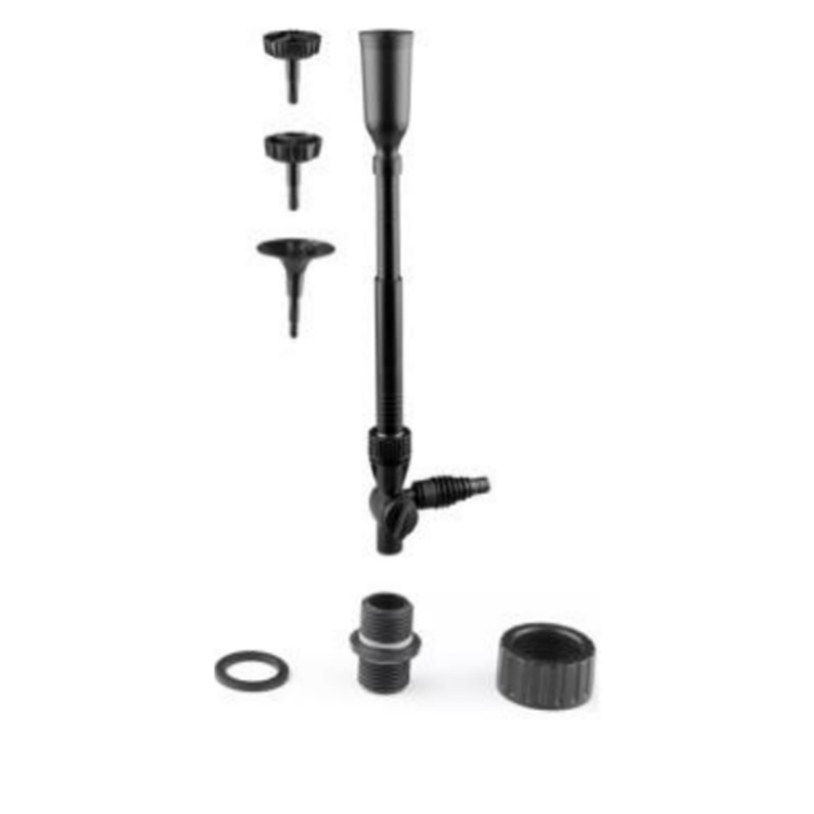 Das All-in-One-Set ist mit einem optionalen Fontänenkopf ausgestattet, der Ihr Teichwasser in Bewegung hält. Dadurch wird dem Wasser zusätzlicher Sauerstoff zugeführt. Der Fontänenkopf kann mit verschiedenen Fontänenköpfen abgewechselt werden, von denen jeder eine schöne Atmosphäre für Ihren Teich bietet.